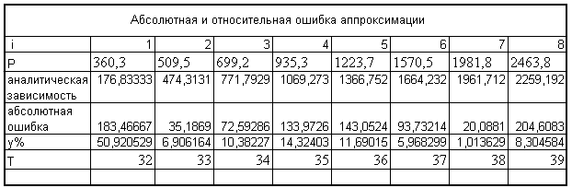 Для оценки погрешности полученной зависимости составим таблицу значений P. Для этого определим давление P по формуле (6). Результаты внесем в таблицу 2.