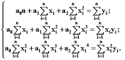 Для определения коэффициентов a0, a1, a2 запишем систему уравнений вида