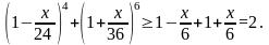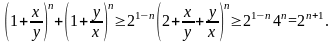Доказательство. Для получения нижней оценки левой части требуемого неравенства первоначально воспользуемся неравенством Бернулли 18, а затем неравенством Коши 14, тогда