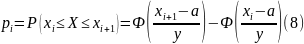 | Xi, Xi+1 | 69,768-71,25 | 71,25-71,991 | 71,991-72,732 | 72,732-73,473 | 73,473-74,214 | 74,214-74,955 | 74,955-76,437 |