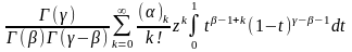 Дане визначення гіпергеометричної функції придатне лише для значень z, що належать колу збіжності, однак надалі буде показано, що існує функція комплексного змінного z, регулярна в площині з розрізом (1,