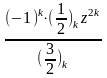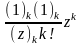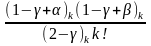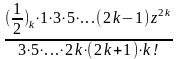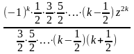 – нуль або ціле негативне число, ряд обривається на кінцевому числі членів, і сума його являє собою поліном відносно z. За винятком цього випадку, радіус збіжності гіпергеометричного ряду рівняється одиниці, у чому легко переконатися за допомогою ознаки збіжності Даламбера: думаючи