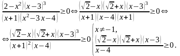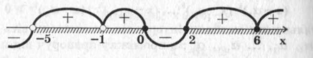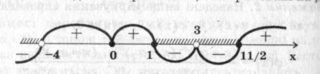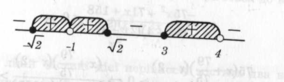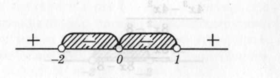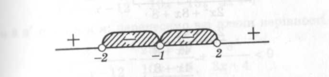 є коренями рівняння. Наносимо ці числа на числову вісь і визначаємо знак лівої частини функції
