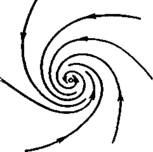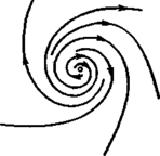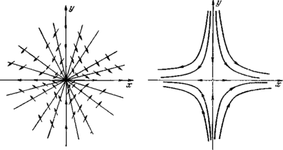 , если а > 0 (рис. 13, б). Состояние равновесия такого типа, как в данном примере, называется фокусом, устойчивым в случае а<0 и неустойчивым при a > 0.