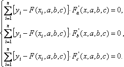 Решив систему (3.1.5) относительно параметров a, b, c находим конкретный вид искомой функции.