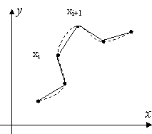 При слишком высокой степени полинома проблемы можно избежать, разбив отрезок интерполяции на несколько частей с построением для каждой из них своего интерполяционного многочлена. Такое интерполирование имеет серьезный недостаток: в точках стыка интерполяционных многочленов оказывается разрывной первая производная. На рисунке 3.2 показан простейший способ такой интерполяции экспериментальной зависимости – соединение соседних точек прямыми (многочлен степени