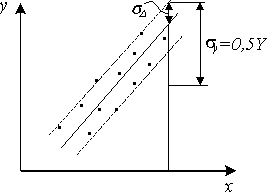 среднеквадратичное отклонение от линии регрессии (см. рис. 3.6). В связи с этим, учитывая (3.2.3), коэффициент корреляции очень часто определяют как