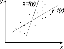 Главная особенность регрессионного анализа состоит в том, что регрессия y на x не соответствует регрессии x на y (см. рис. 3.3).
