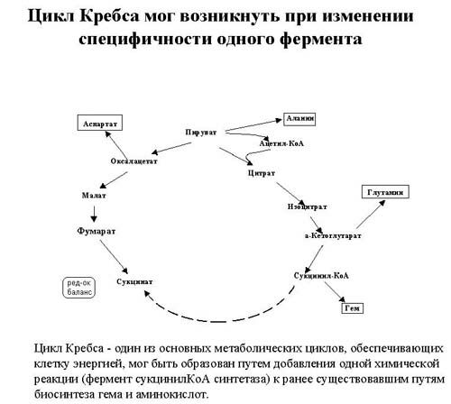 Мы говорили, что цикл Кребса мог возникнуть при замыкании двух реакций при добавлении всего одного фермента, и такие вот примеры показывают, что такой фермент мог быть рекрутирован из фермента с близкой ферментативной активностью.
