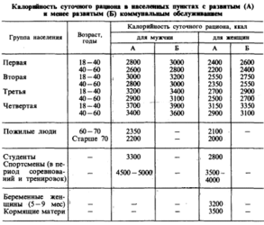Четвертый принцип – создание оптимальных условий для усвоения пищевых веществ путем специальной кулинарной обработки пищи и периодического использования химически и механически щадящих рационов. Ниже приведены таблицы норм физиологических потребностей в пищевых веществах и энергии для различных групп населения.