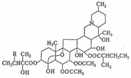 Молекулы алкалоидов второй группы содержат 7-9 атомов кислорода и находятся в растениях в виде сложных эфиров. Примерами могут служить протовератрины А (R = Н) и В (R = ОН), используемые в фармакологии.