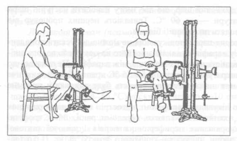 Апарати блокового типу основані на принципі блоку з вантажами, за допомогою яких збільшується сила м'язів. У випадках суттєвого зниження сили м'язів можна полегшити рухи при умові врівноваження ваги кінцівки точно підібраним вантажем. Змінюючи вихідні положення пацієнта можна диференційовано зміцнювати визначені м'язові групи (рис. 2).