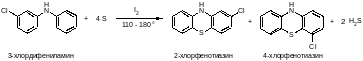 Реакция протекает с образованием двух изомерных хлорфенотиазинов – 2-хлорфенотиазина и 4-хлорфенотиазина.