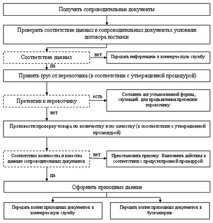 Приемка любых товаров, в том числе и лекарственных препаратов и изделий медицинского назначения, означает проверку соответствия и оценку качества, количества и комплектности товара его характеристикам, техническим условиям, условиям договора поставки и осуществляется по общей схеме (представленной на слайде).