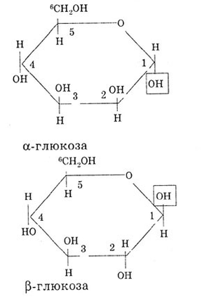 Если полуацетальный гидроксил и группа «ОН» у шестого углеродного атома находятся по разные стороны плоскости, то такой изомер называется α-глюкозой, если по одну сторону, то β-глюкозой: