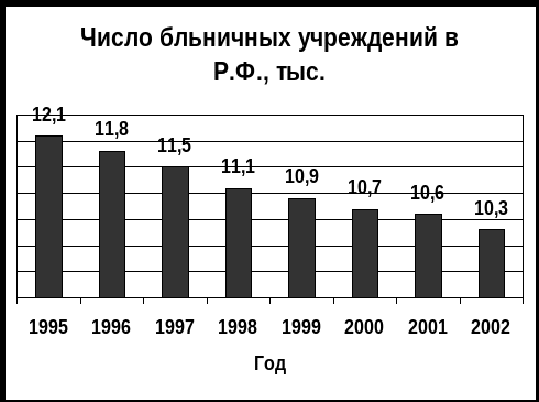 Число больниц и поликлиник в стране всего за семь последних лет сократилось почти на две тысячи, или на 15% (см. график 1).