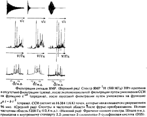 Несмотря на то что непрерывное фурье-преобразование может перевести полный спад свободной индукции в идеальный частотный спектр, в последнее время все чаще обсуждается возможность подбора наилучших способов преобразования временного сигнала в частотное представление. Это связано с тем, что в реальном эксперименте мы наблюдаем спад свободной индукции в течение конечного интервала времени Причем число повторений определяется тем значением отношения сигнал/шум, которое нужно получить. Таким образом, в силу конечности интервала Tag в нашем распоряжении имеется только эта дискретная информация и в результате фурье-преобразования получаем частотный спектр, который в точности соответствует этому усеченному спаду свободной индукции и лишь приближенно соответствует истинному спектру.