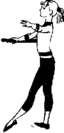 8. Шаги польки вперед. И. п. - стать в третью позицию, правая впереди, руки на пояс. "И". Небольшой подскок на левой ноге, одновременно правую ногу поднять вперед.