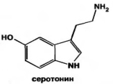 Производным индолилалкиламинов является серотонин (5-окситриптамин) – биогенный амин, образующийся в организме путем биосинтеза из триптофана (схема 1):