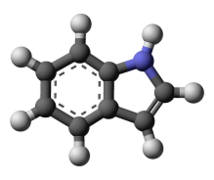 Молекула индола (бензпиррола) представляет собой конденсированную систему, состоящую из бензольного и пирролового циклов. Внешний вид: в виде листовидных бесцветных кристаллов, с запахом нафталина. Является родоначальником широкого класса природных соединений. Содержится в каменноугольной смоле, в некоторых эфирных маслах (например, в масле жасмина).