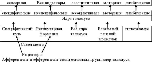 Наряду с корковыми проекциями релейных ядер каждое из них получает нисходящие корковые волокна из той же проекционной зоны, что создает структурную основу для взаиморегулирующих отношений между корой и таламусом.