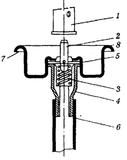 4 — гумова манжета; 5 — корпус клапана; в — сифонна трубка; 7 — прокладка; 8 — капсула (чашка)