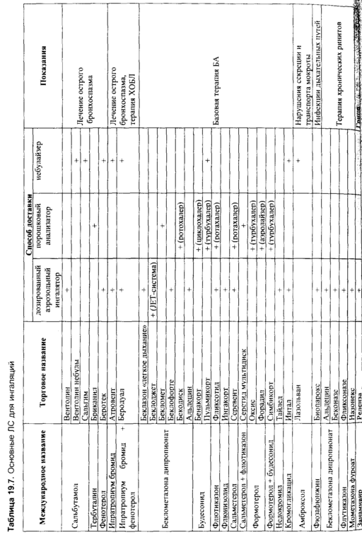 | АДІ | 15-20 | Резервуар | Можна використовувати зі спейсером; інгалятор містить багато доз; гарне співвідношення вартості й ефективності; ефективність мало залежить від швидкості вдиху | Складність у використанні (вимагає координації вдиху й активації АДІ); неможливо застосовувати в дітей до 6 років; ефект охолодження при вдиханні (фреон);більша частина дози попадає в порожнину рота й ковтки; багато небажаних ефектів |