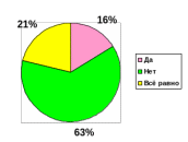 Для большинства респондентов тема “похудеть” не актуальна (63% опрошенных); 21% респондентов оказались равнодушны к данной теме; и лишь для 16% тема “похудеть” оказалась актуальна.
