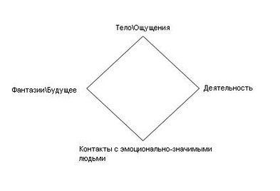 Все наши проблемы, стрессы и так далее можно выразить в форме ромба с четырьмя сферами жизни: