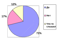 В этом вопросе хотели выяснить знакомо ли понятие “анорексия” девушкам. 71% респондентов ответили, что знакомы с данным понятием, 17% не знакомы и 12% что-то слышали об этом.