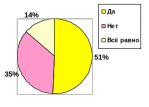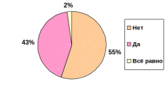 В следующем вопросе мнения респондентов распределились следующим образом: на первом месте (54%) пункт “да”, на втором (39%) “нет” и 7% выбрали пункт “всё равно”