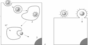 Покрытые вакуоли сливаются с другими, более крупными цитоплазматическими вакуолями, образуя рецептосомы, содержащие рецепторы, но не содержащие клатрин, а те в свою очередь сливаются с лизосомами. Таким путем проникшие в клетку белки обычно транспортируются в лизосомы, где происходит их распад на аминокислоты; они могут и миновать лизосомы, и накапливаться в других участках клетки в недеградированной форме. Альтернативой рецепторного эндоцитоза является жидкостный эндоцитоз (пиноцитоз), когда инвагинация происходит не в специализированных участках мембраны.