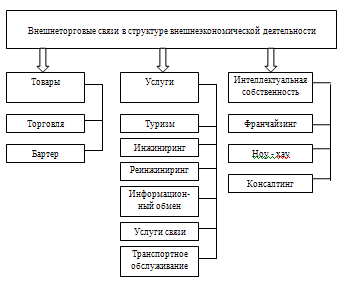 Внешнеторговая деятельность представляет собой предпринимательскую деятельность в области международного обмена товарами, работами, услугами, информацией, результатами интеллектуальной деятельности, в том числе исключительными правами на них (интеллектуальная собственность).