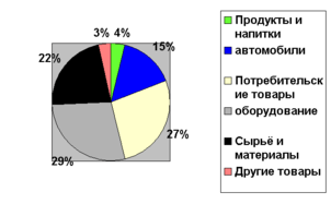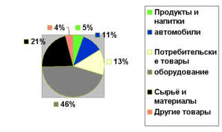 | Общая сумма | Продукты и напитки | автомобили | Потребительские товары | оборудование | Сырьё и материалы | Другие товары |