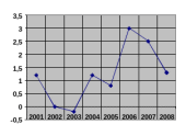 Так, в 2008 году объем ВВП составил 2 492,0 млрд. Евро превысив показатель предыдущего года на 1,3 %(Рис 6, 7)