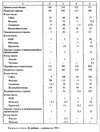 Объем накопленных иностранных прямых инвестиций оценивался на начало 1998г. в Китае (не считая Гонконга) в 217 млрд. долл., в Венгрии и Польше - по 16, а в России - примерно в 10 млрд. долл.