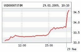 28 января, курс доллара на ММВБ впервые превысил отметку в 36 рублей. Позднее Центробанк России повысил официальный курс доллара на 32 копейки, установив его на 29 января на уровне 36,32 рублей. [16]