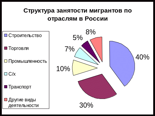 Распределение мигрантов по отраслям выглядит следующим образом: