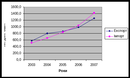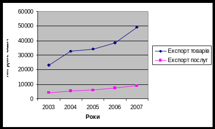 Рис 2.5 Експорт товарів і послуг України за 2003-2007 роки