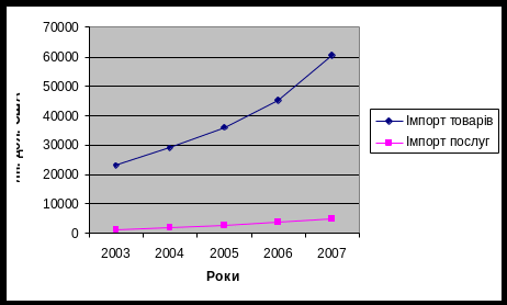 Рис 2.7 Динаміка імпорту товарів і послуг України протягом 2003-2007 років