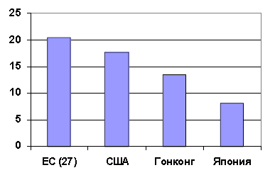 Рисунок 2 – Основные страны-импортеры китайской продукции и их доля в общем объеме экспорта Китая в 2008 г., %