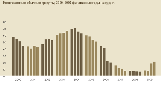 Рисунок 3 – Непогашенные обычные кредиты в 2000-2009 гг., млрд. СДР