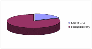 За п’ять років відбулись і структурні зміни. Так у 2002 році експорт до країн СНД ставив 59,9% від загальної величини імпорту. У 2006 році величина експорту до країн СНД ставив 46,0% (рис. 3.2). Тобто ми бачимо за п’ять років структурне зменшення експорту послуг до країн СНД 13,9% [37, с. 90].