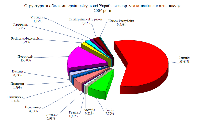 Рис.1.10. Структура експорту насіння соняшнику Україною та частка Франції в експорті у 2006 році