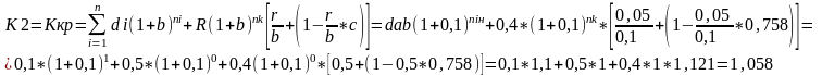 c=0,758-береться із таблиці 2.3, у якій “с” розраховано для різних сполучень значень банківського відсотку (b=10%)та термінів надання кредиту(tkp=5 років).