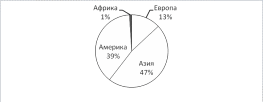Рис.1 Удельный вес членов кооперативов по континентам (в % к общей численности кооперативов, имеющихся в мире) на 2002 год