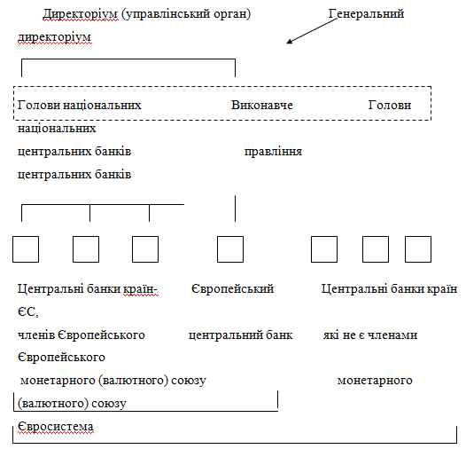 Оскільки було зрозуміло, що не всі країни-члени ЄС одночасно приєднаються до схеми валютного союзу, було запропоновано створити Європейську систему центральних банків за федеративним принципом (див. рисунок нижче)