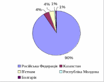 Найбільший обсяг експортної продукції приходиться на Російську Федерацію (90 %) (рис.2.1).