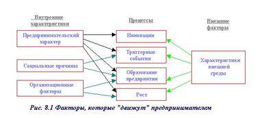 На рис.1. схематически представлены различные факторы, определяющие мотивацию стать предпринимателем, взять на себя личную ответственность за серьезный шаг, затрагивающий интересы и часто судьбу многих людей.