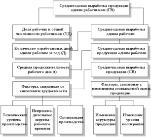 Рисунок 1 - Взаимосвязь факторов, определяющих среднегодовую выработку продукции работника предприятия